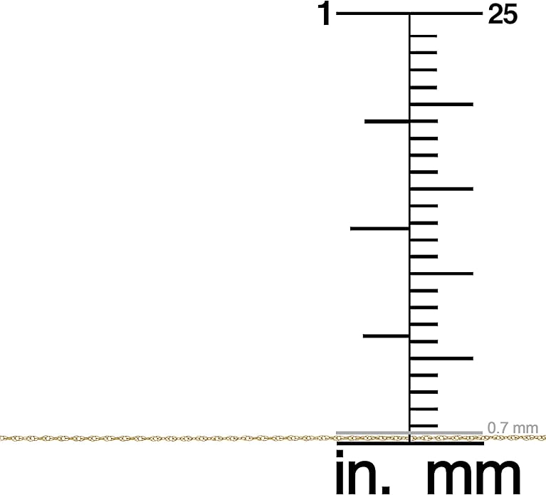 - DIMENSIONS - This rope chain is 0.7 millimeters wide and 18 inches or 45.7 centimeters long. This 14k gold chain is lightweight and very thin (PLEASE SEE SECOND IMAGE FOR PENNY COMPARISON). It secures with a spring ring clasp.