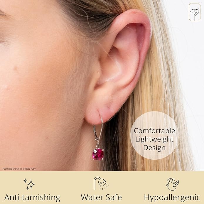 Solid 10K Gold Cushion Cut Dangle Gemstone Earrings for Women | 6mm Gemstone Birthstone Earrings | Checkerboard 10 Karat Gold Dangle Drop Leverback Earring for Women by MAX + STONE