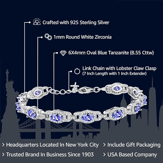 - 925 STERLING SILVER RADIANCE: Meticulously crafted from high-quality 925 sterling silver, this tennis bracelet showcases exceptional attention to detail. The silver setting enhances the beauty of the tanzanite gemstones, providing a lustrous backdrop for your wrist.