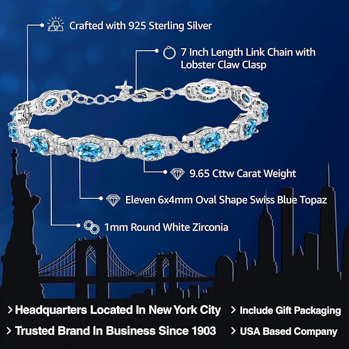 - GENUINE 925 STERLING SILVER: Crafted from high-quality 925 sterling silver, this bracelet offers durability and a luxurious shine. The sterling silver setting beautifully complements the Swiss Blue Topaz stones, creating a stunning contrast and ensuring long-lasting quality.