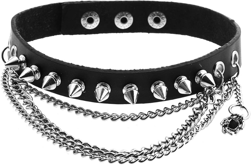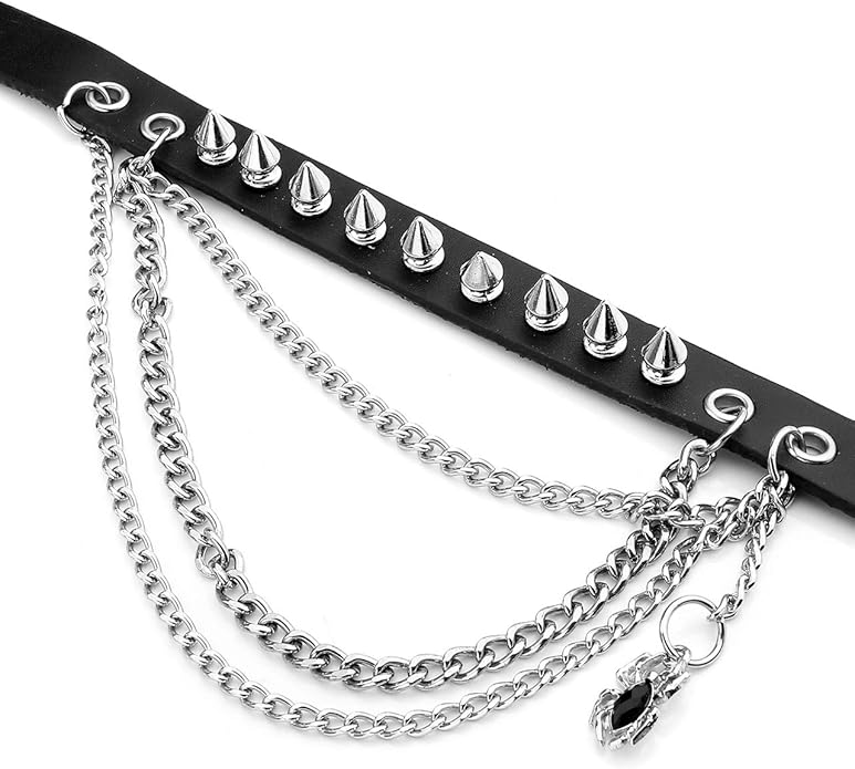 - Genuine Leather material with alloy spikes and chain accessories, with a Spider dangling charm