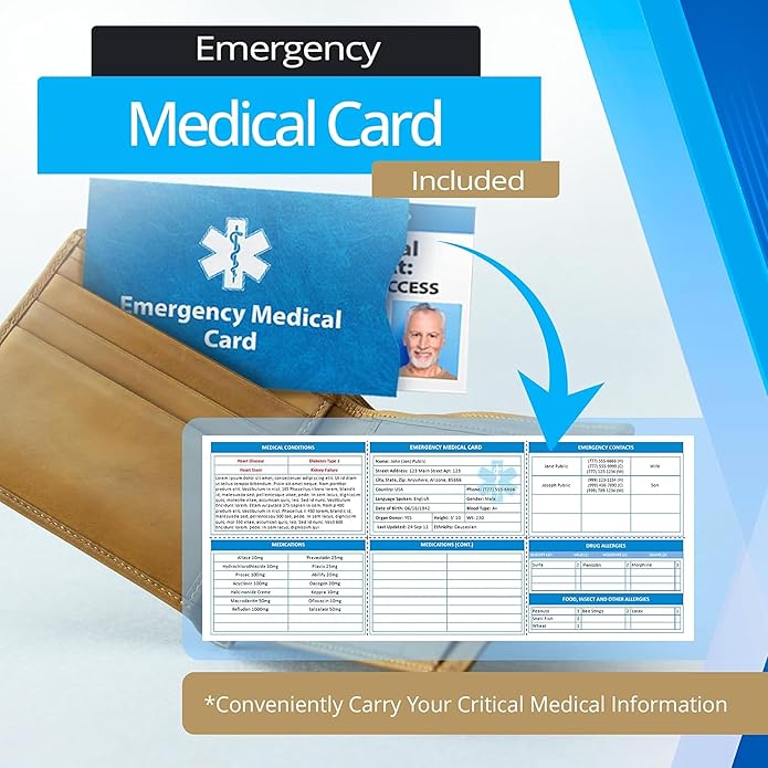- EMERGENCY MEDICAL CARD INCLUDED: Each medical bracelet includes an easy-to-read emergency medical wallet card for extra information that doesn’t fit on the id bracelet—helping first responders access critical details quickly.