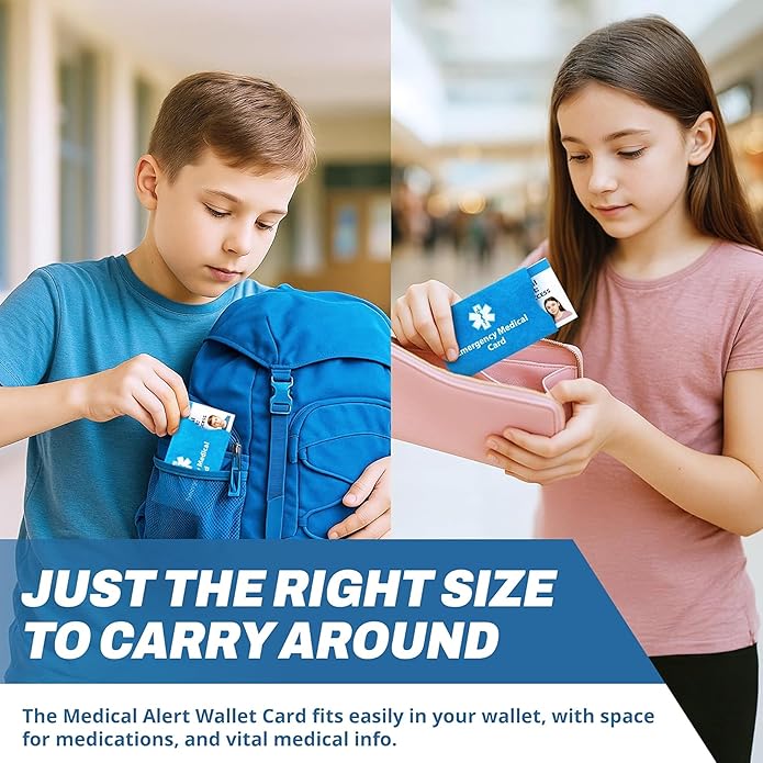 - EMERGENCY MEDICAL CARD INCLUDED: Each medical bracelet includes an easy-to-read emergency medical wallet card for extra information that doesn’t fit on the id bracelet—helping first responders access critical details quickly.