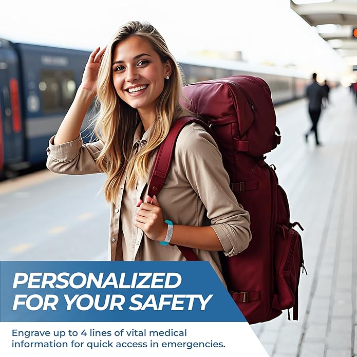 - CUSTOM ENGRAVED MEDICAL ID BRACELET: Create your own personalized medical ID bracelet with up to 4 lines of custom engraving (25 characters per line). Perfect for name, medical conditions, medications, allergies, blood type, or emergency contact (ICE). Essential for diabetes, epilepsy, heart conditions, asthma, autism, or severe allergies