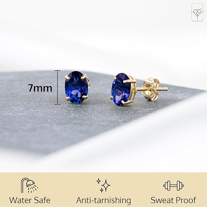 - 14k Real Gold - These oval gemstone stud earrings are crafted in genuine 14k yellow gold. Rest assured knowing that all solid gold birthstone earrings for women are stamped with ""14K"". Lab created sapphire earrings are made to last and wear everyday