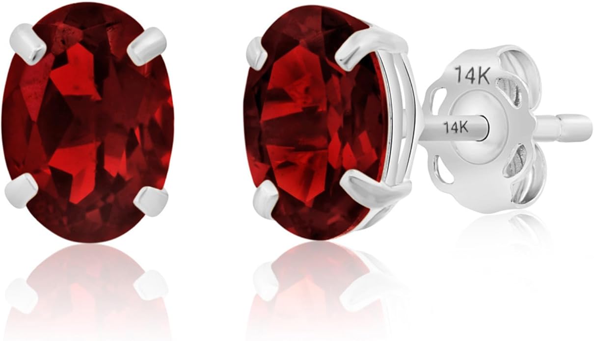 - 14k Real Gold - These oval gemstone stud earrings are crafted in genuine 14k white gold. Rest assured knowing that all solid gold birthstone earrings for women are stamped with ""14K"". Natural garnet earrings are made to last and wear everyday