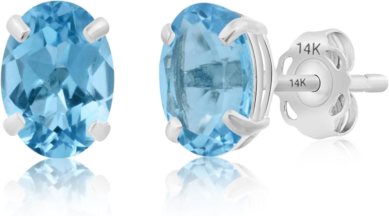 - 14k Real Gold - These oval gemstone stud earrings are crafted in genuine 14k white gold. Rest assured knowing that all swiss blue topaz earrings are stamped with "14K". Real blue topaz earrings are made to last and wear everyday