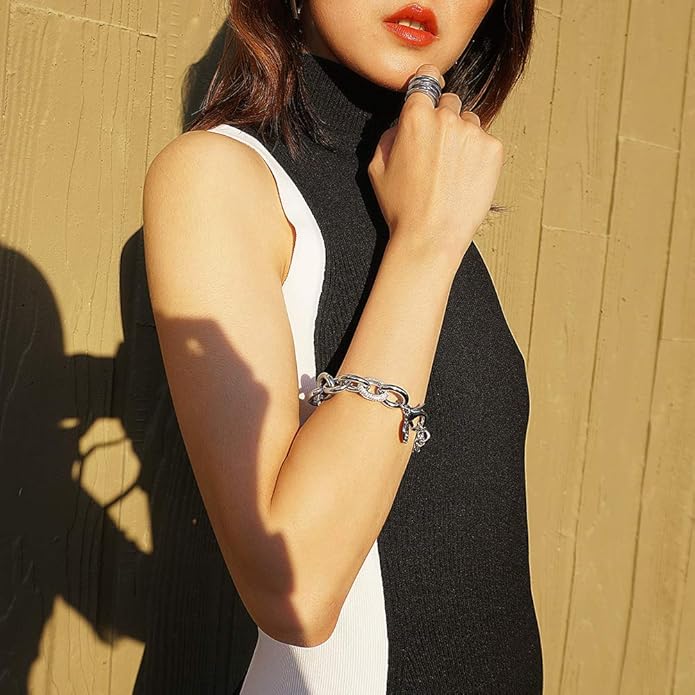 CIUNOFOR Multiple Selection Link Bracelet Designer Brand Inspired Antique Women Jewelry Cable WireVintage Valentine's Day Wide Cuban Curb Link Bracelet Stainless Steel Adjustable Chain for Men and Unisex adults.