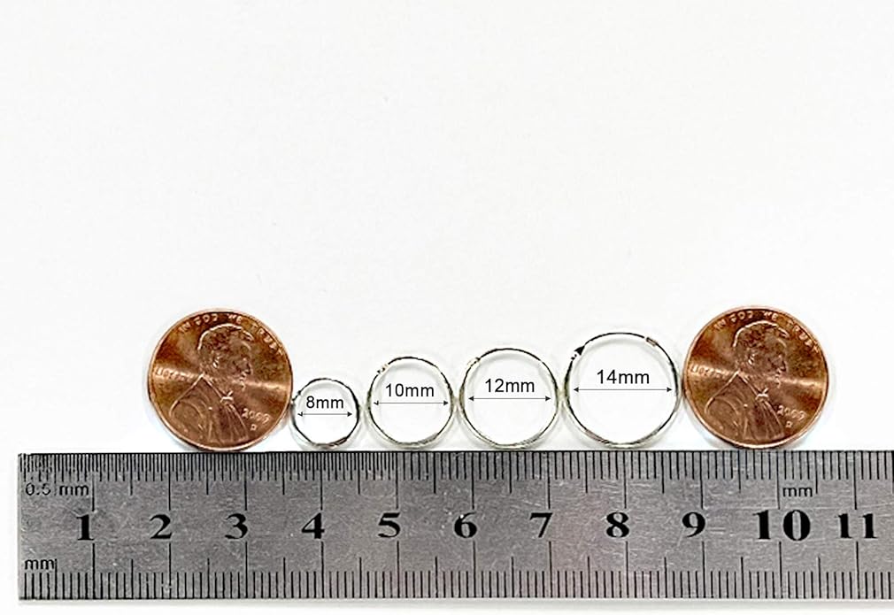 - Two Kinds Of Size: Guage:0.9mm(20G), Inner Diameter: 8mm, 10mm, 12mm, 14mm. Classic round hinged segment hoops design, easier to put on or take off. NOTE: 8mm earring is very small