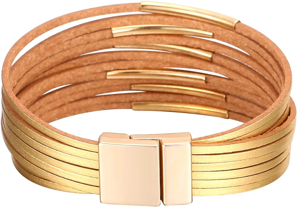 - 【SUPERIOR QUALITY】 Our Leather Cuff Bracelets is carefully crafted by handmade with environmental leather and high-grade alloy clasp to ensure you get a durable and exquisite bracelet. Stranding with premium accessories makes this wrap bracelets looks gorgeous and trend appearance, it will satisfying your taste in fashion.