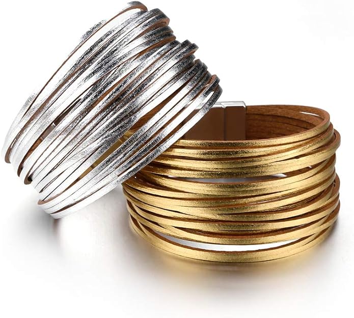 - 【UNIQUE DESIGN】 This women leather bracelet features gold multilayer leather cord, it is made of a strong high-quality alloy clasp so as to easy wear and take off.