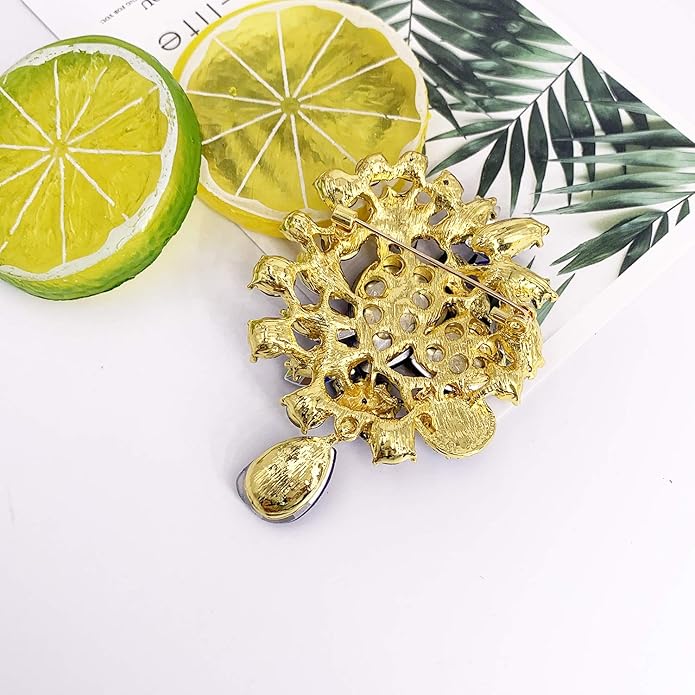 LAXPICOL Vintage Wedding Bridal Big Blue Crystal Rhinestone Tear drop Brooch Pin for Women