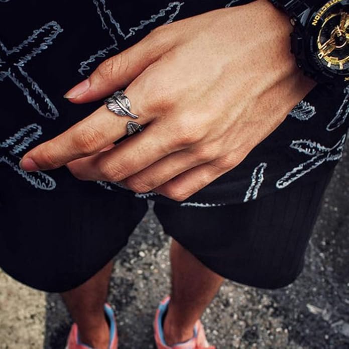- ONE SIZE – Our feather ring is EASILY ADJUSTABLE,Special Open Ring Design, Easy to Adjust the Size to Fit to You Finger Perfectly.– No special tools needed HAND ETCHED DETAIL – Intricately carved and oxidized by hand, so every detail is clear and vivid.