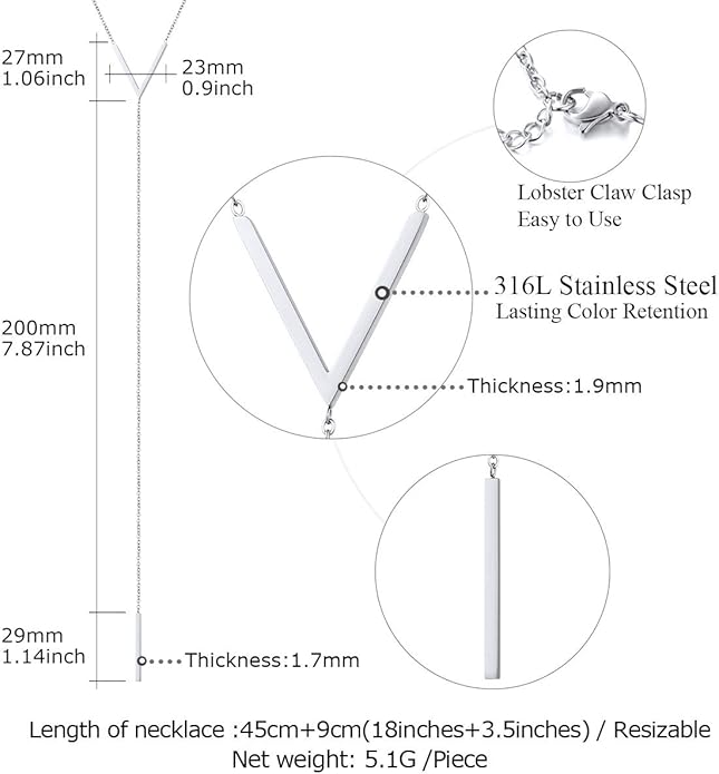- High Quality Choice - The pendant and chain are all made of solid 316l stainless steel, 18" and 3.5" extender chain length. Long Drop Chain:7.87". Drop bar: 1.14" . Including the 1" bar charm.