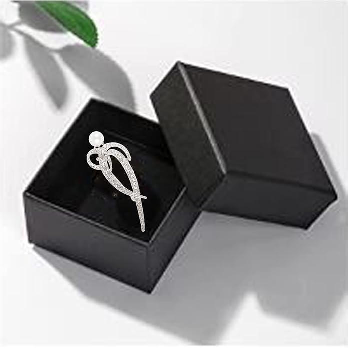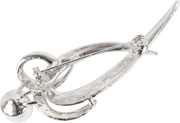 - Touchstone Indian Bollywood Intricately Designed Faux Pearls Rhinestone Beautiful Designer Jewelry Brooch In Silver Tone For Women. SPECIFICATIONS : Length 2.75 Inches. Width 1 Inch.