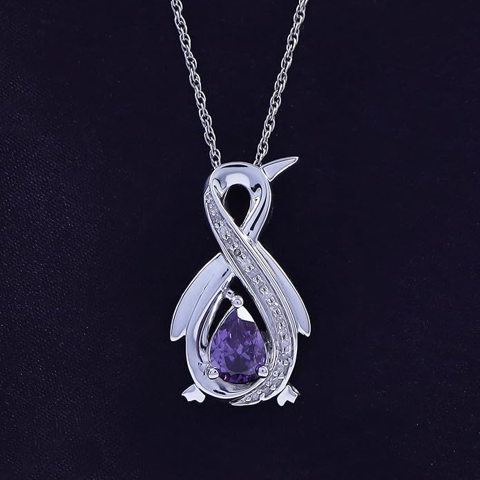 - MEANINGFUL PENGUIN DESIGN – Infinity penguin pendant with pear & round simulated birthstone and diamond accents, symbolizing love, family & friendship. Unique animal jewelry gift for women.