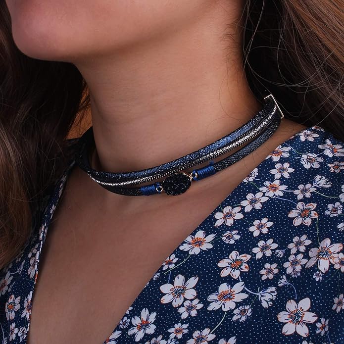 - Unique Design: Navy blue bangle bracelet wraps around your wrist and sparkles with strands composed of resin stone and a single strand featuring crystal beads.