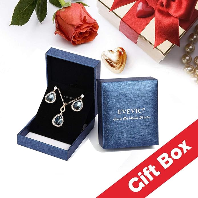 Austrian Crystals Teardrop Pendant Necklace Earrings for Women 14K Gold Plated Hypoallergenic Jewelry Set