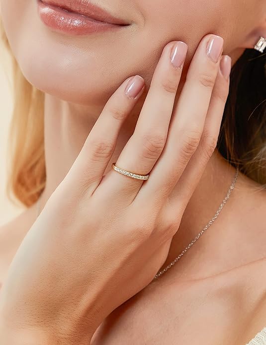 EAMTI 2mm Wedding Band Cubic Zirconia Half Eternity Stackable Brass Engagement Ring Size 3-13