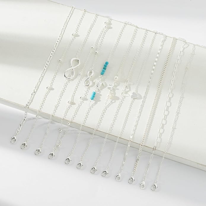 - Anklets for Women: Every black gifts box contain 16 pcs different styles of anklets, like cute elephant, turtle, stars, pineapple, beads and fashion multilayer infinity anklets etc. Share some of them with your best friends or sisters also will be a great choice.