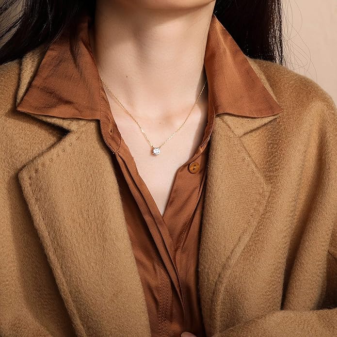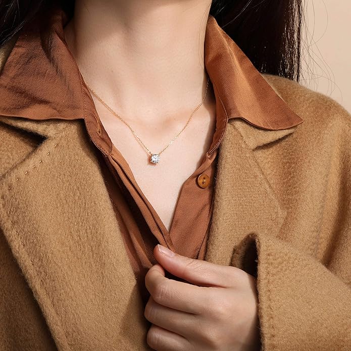 S.Leaf 18Karat Gold Plated Cubic Zirconia Necklace for Women S925 Sterling Silver 0.5/1/2cttw Dainty Crystal Cubic Zirconia Pendant Necklaces Best Friend Birthday Gifts for Women Trendy Sister Mom Wife Womens Her Friend Party