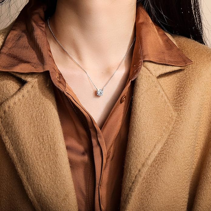 - Material: The crystal necklace is handcrafted in 925 Sterling Silver Stamped with 925, 18Karat gold plated to keep extra shine, 5A grade (8 hearts & 8 arrows) cubic zirconia, D color, VVS Clarity, 0.5/1/2 cttw of the cubic zirconia for your different choice. The work process of the CZ fake diamond is quality high shine polished.