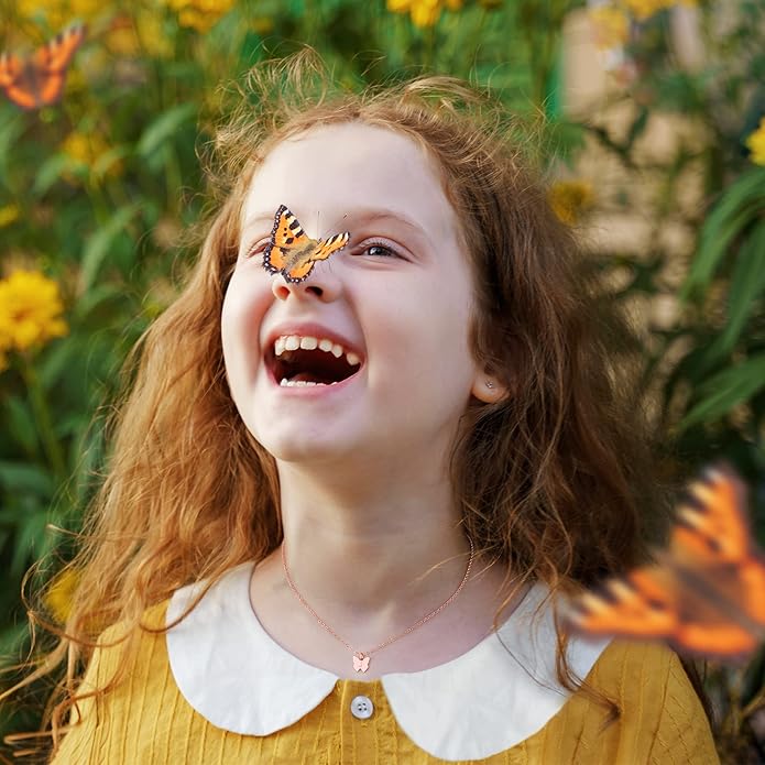 Hidepoo Initial Butterfly Necklace for Girls Gifts, 14K Gold/Silver/Rose Gold Filled Dainty Butterfly Pendant Choker Necklace Initial Butterfly Necklace Birthday Gifts for Girls