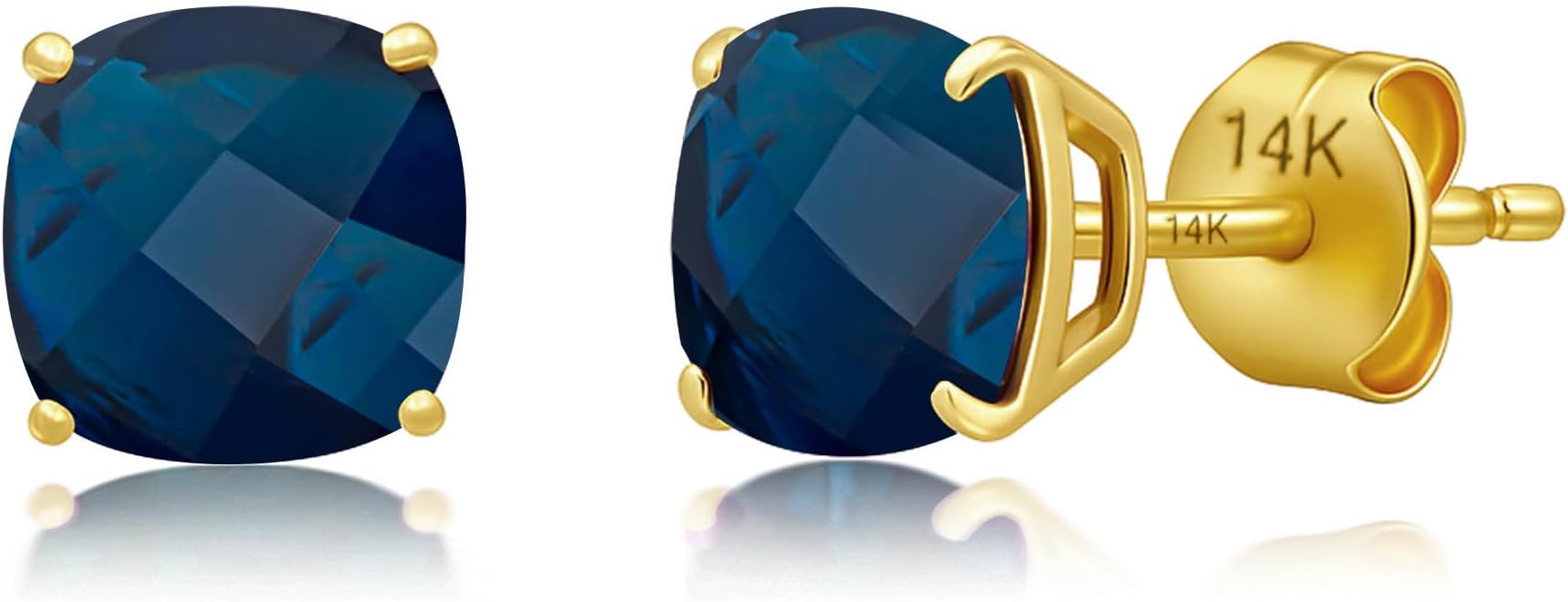 14k Gold 6MM Cushion Cut Stud Gemstone Earrings | Hypoallergenic Solitaire Gemstone Studs with 14K Gold Backs | Lightweight Birthstone Earrings with Gift Box by MAX + STONE