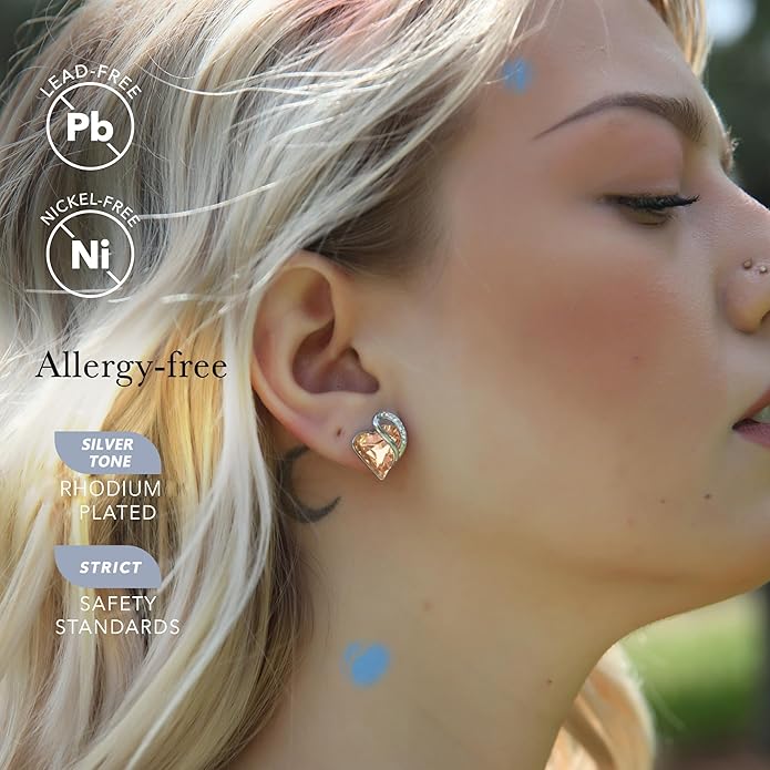 • Delicate Heart Jewelry that Lasts - These statement earrings for women are adorned with 0.53 x 0.68-inch birthstone crystals. They are silver plated and designed with secure stud posts.