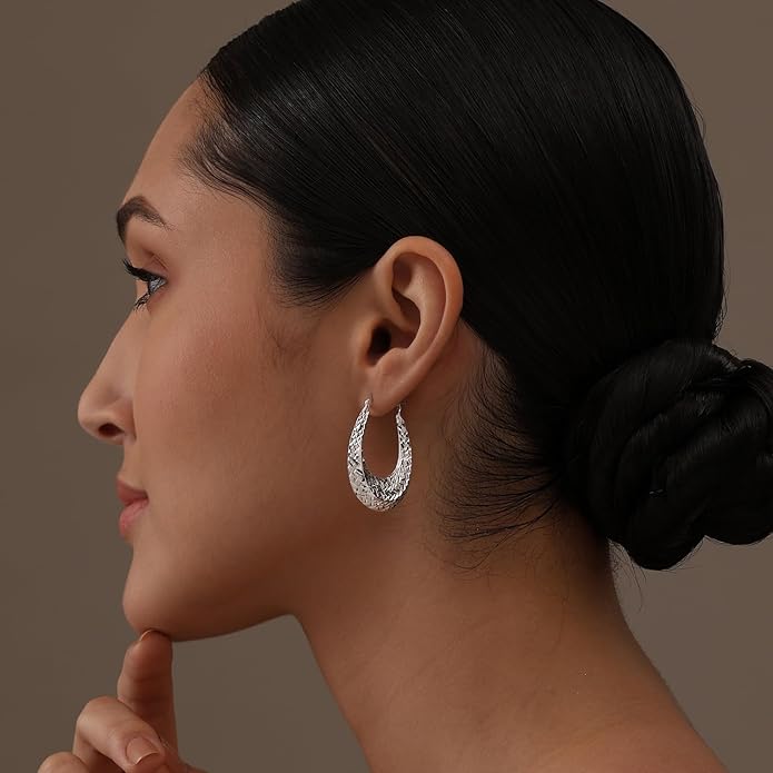 LeCalla 925 Sterling Silver Shrimp Classic Diamond-Cut Light-Weight Hoop Earrings for Women