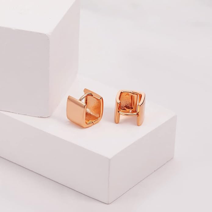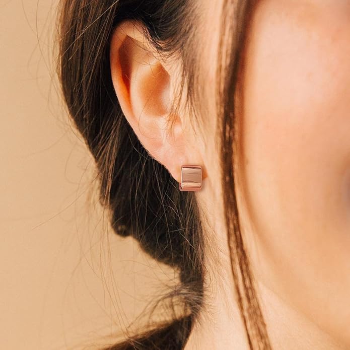 - ❤ Rose Gold Huggies Hoop: Our small square huggies hoop earrings are 1cm in length, width and height. They are exquisite and compact, suitable for everyday wear.