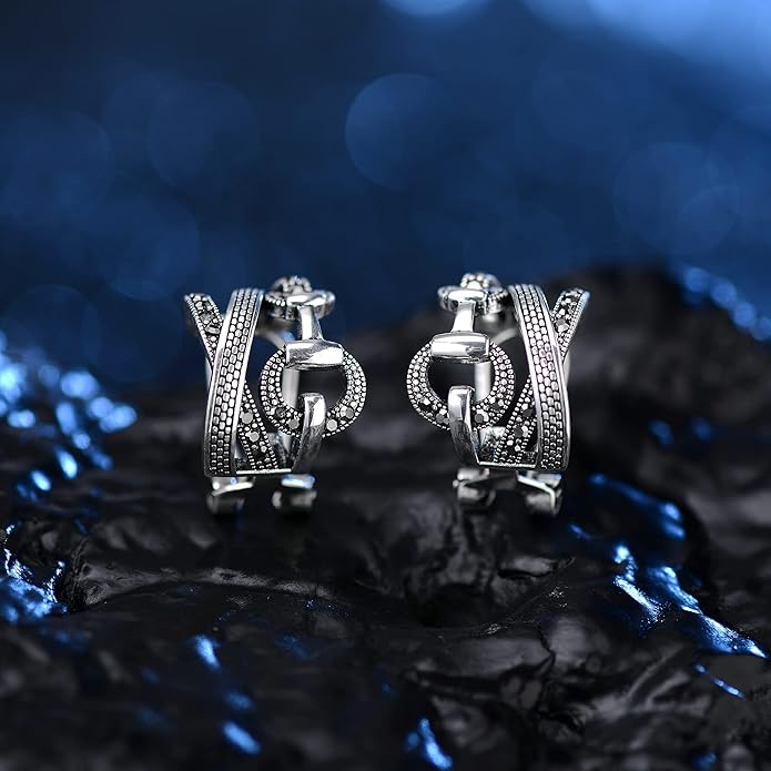 - Material and Size: Crafted with high-quality marcasite stones and silver plating; each earring measures 18 mm x 14 mm and weighs 11 g, providing a perfect fit