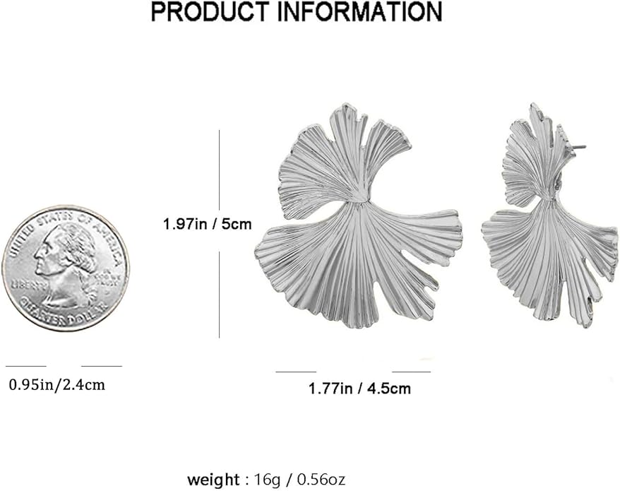 - 【Unique Design】: Gorgeous ginkgo shaped design makes these silver fashion earrings an great addition to any party look, post-back closures hold earrings securely in ears, easy to put on and off. Bring a fresh modern look to a statement earring, and irregular geometric figures fully demonstrate your personality.