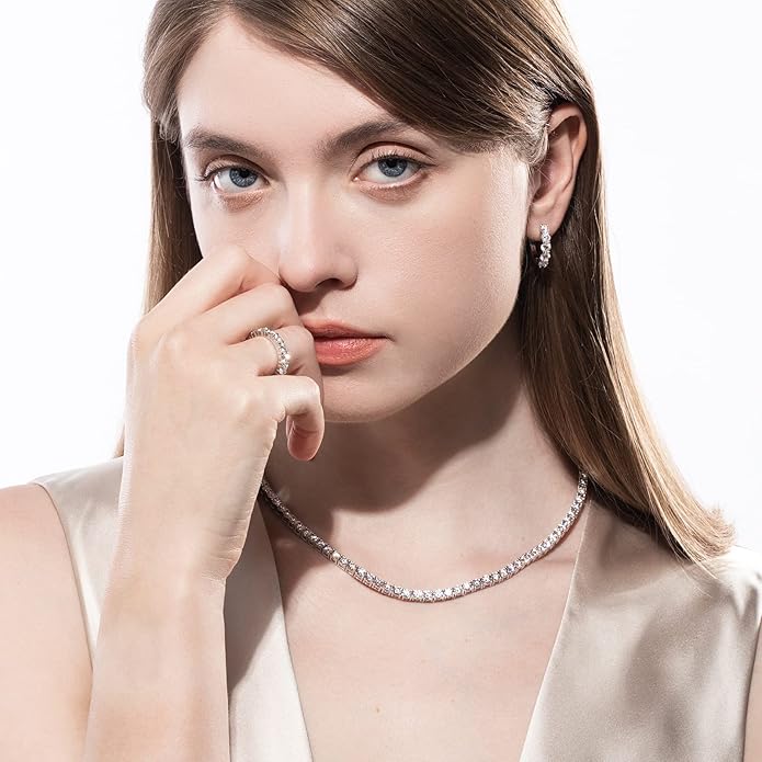 - 【CLASSIC DESIGN】: Classic minimalist band design, Eternity Moissanite ring, excellent eight hearts and arrows, round brilliant cut is the best shape to reflect lights in and out. Timeless classical in beauty boost any casual or elegant formal attire, making you focus of the feast, banquet, meeting, dating, prom, party, travel, just feel confident to wear it, be ready for receive many compliments from your friends.