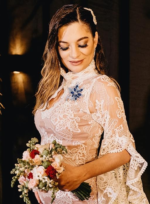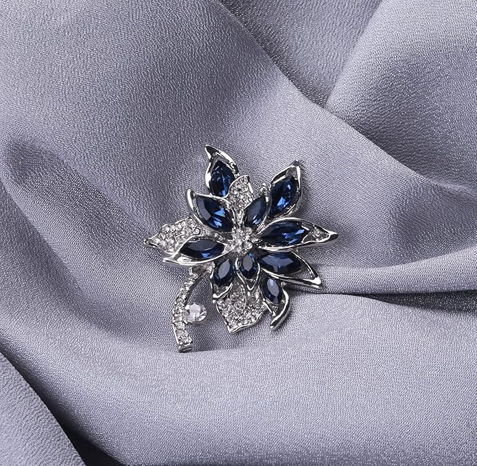 Blue Crystal Brooch Pins Fancy Vintage Style Rhinestone Flower Brooches Jewelry Gift for Women, girls, ladies