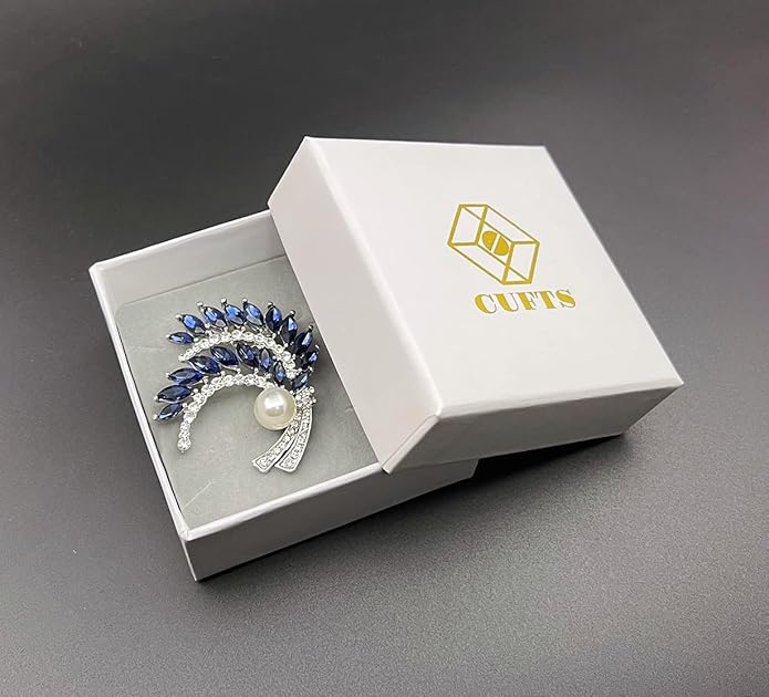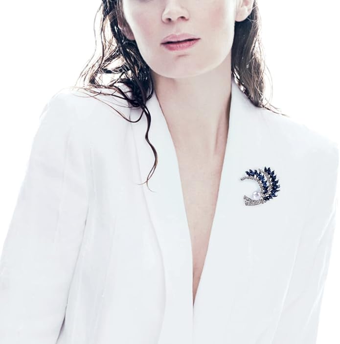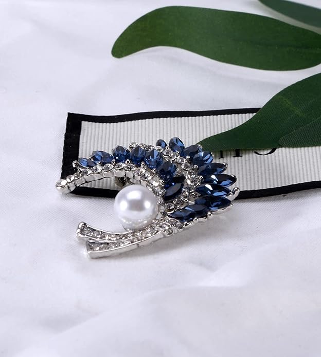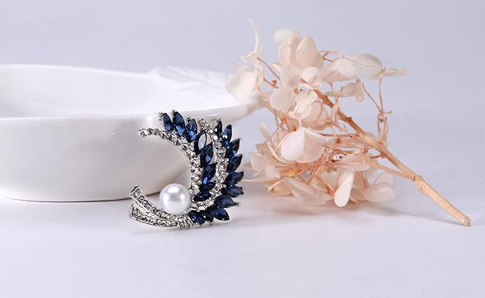 Blue Crystal Brooch Pins Fancy Vintage Style Rhinestone Flower Brooches Jewelry Gift for Women, girls, ladies