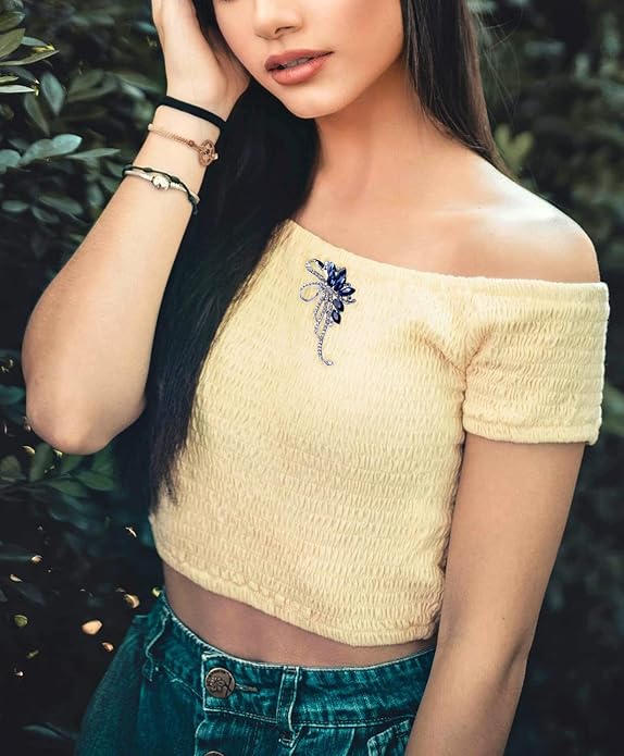 Blue Crystal Brooch Pins Fancy Vintage Style Rhinestone Flower Brooches Jewelry Gift for Women, girls, ladies