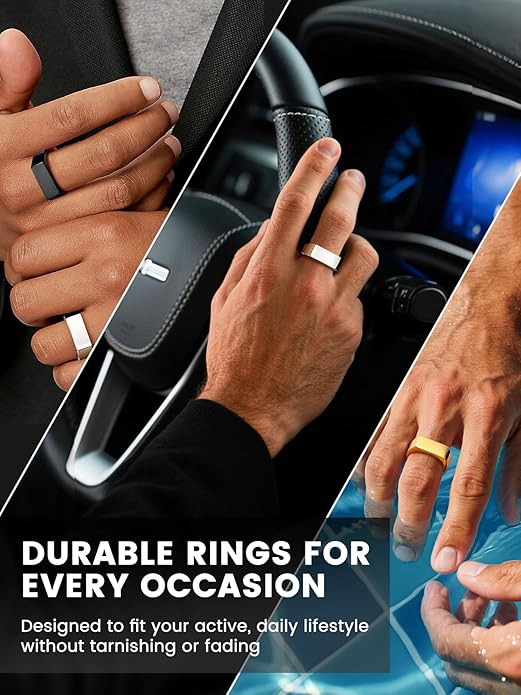 - Rings for All Age- Shape Style : Hexagon Rectangle Sauare . Color: Silver/Gold/Black/Vintage Grey. US Size: 7/8/9/10/11/12/13/14 .This simple ring is designed for everyone and every aga. Choose the one that fit you.