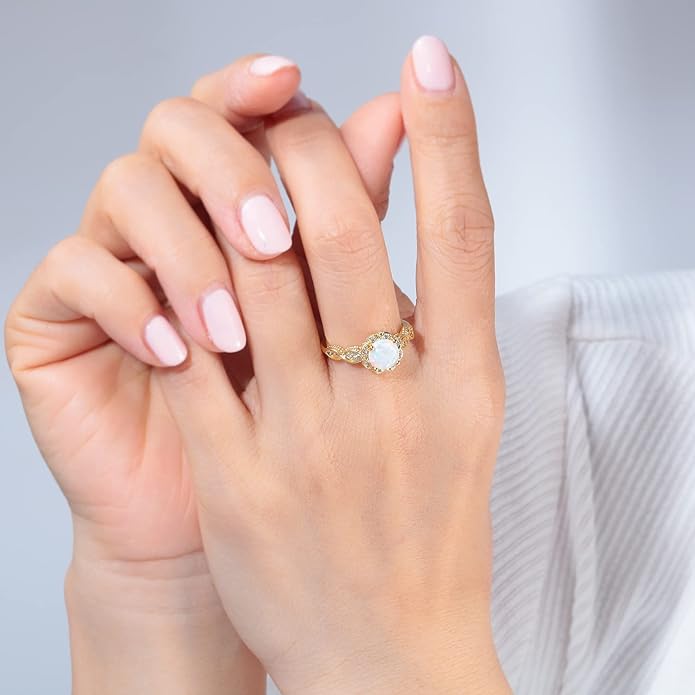 CiNily 18K Gold Plated Opal Ring-White Fire Opal & Amethyst & Cubic Zirconia Women Jewelry Gemstone Engagement Anniversary Ring Size 5-13