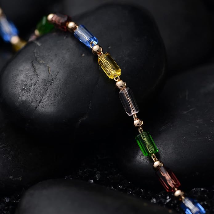- FASHION DESIGN. Colorful tiny bar and gold beads are strung directly on to a thin gold chain to create a simple but elegant bracelet. This minimalist beaded bracelet is perfect for layering or wear it alone for a simple, easy look