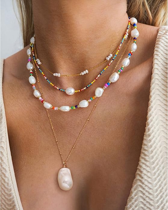 - 【SIZE】The gold beads chain of this thin gold chain necklace is 20 inches long and there will be a small gold bead every other o-word chain, much like a satellite chain.The size of the irregular pearl pendant is 24-25mm*14-15mm. Although pearl pendant necklace for women is larger than the normal pearl pendant, it is also very suitable to wear. If you wear mother of pearl necklace with other chokers, it will have a unique flavor.
