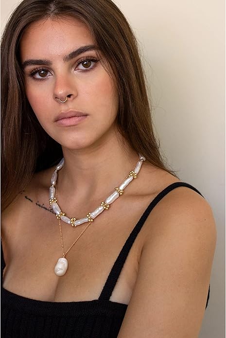 - 【MATERIAL】The irregular pearl of this mother of pearl necklace is made from shells. The satellite chain is made with 18K gold electroplating process to minimize the fading of the necklace. Preferred material, free of lead and nickel, hypoallergenic, 100% safe for sensitive skin. We check each item as it leaves our workshop to ensure you’ll be pleased with the superior finish and careful detailing. You can wear it with confidence.