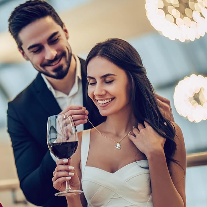 - 【Hypoallergenic Silver Necklaces】Moissanite solitaire necklace pendant is 18K White Gold Plated S925 Sterling Silver. We use the highest percentage of Gold (75% purity) for a shinier luster, meaning all necklacesare sterling silver filled with at least 5% 18K white gold. Our gold necklacesare Hypoallergenic, Lead, and Nickel Free. Don't irritate the skin unlike cheaper metals, moissanite solitaire necklaces are perfect for sensitive skin. Safe to Sleep, Shower, or Swim In.