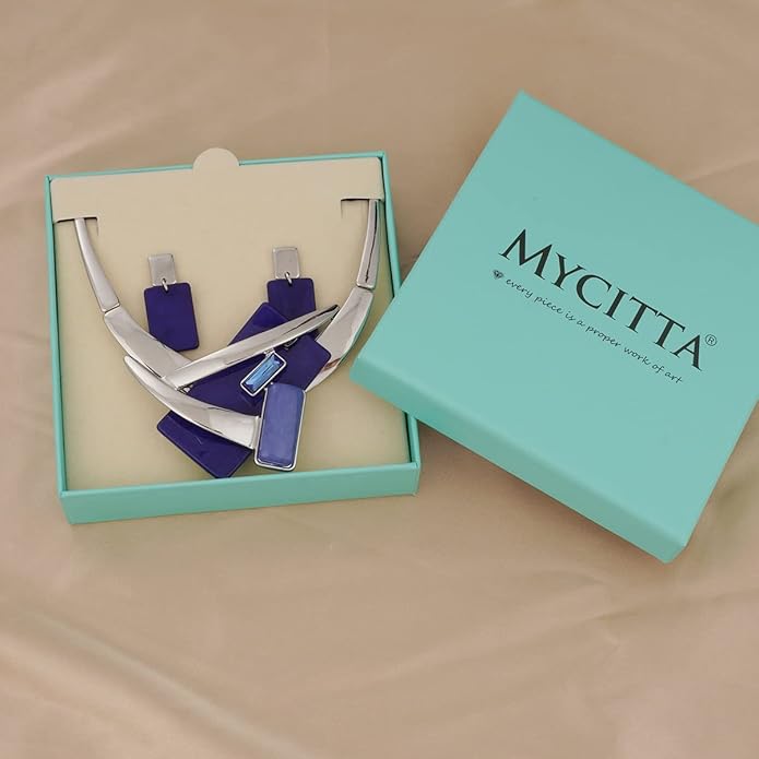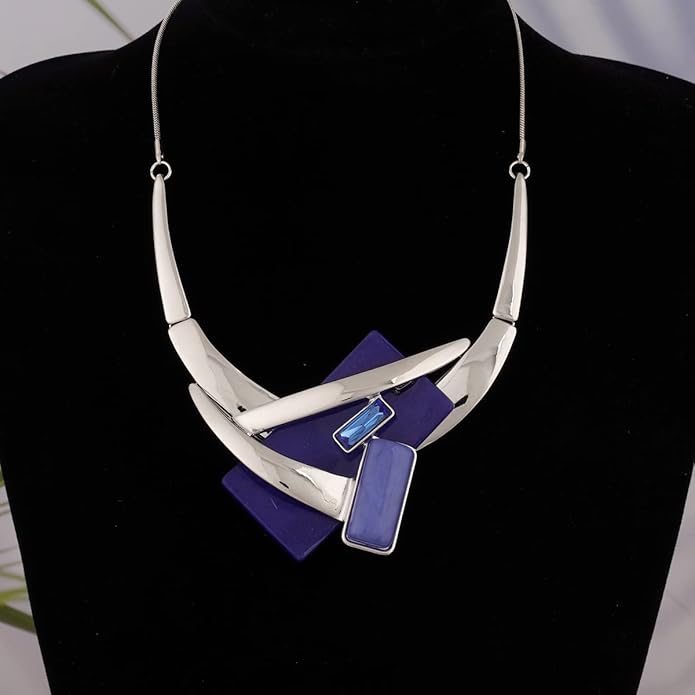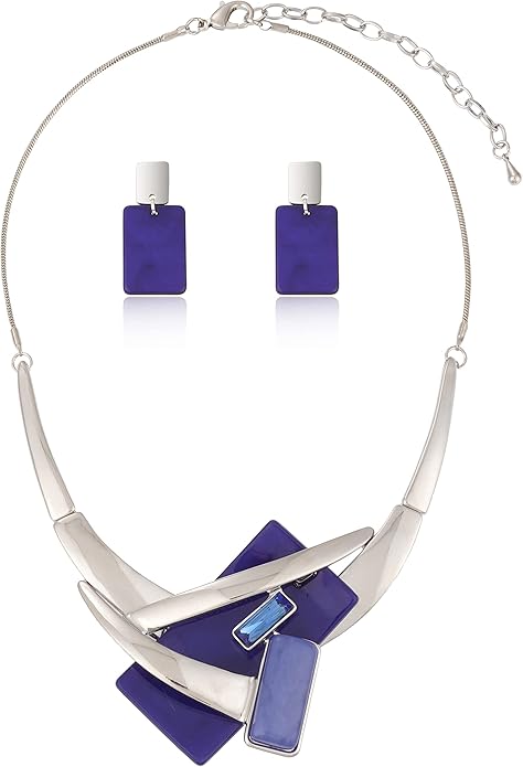 - Elegant Necklace and Earring Sets - This blue sapphire necklace set is adorned with artistic rectangle resin pieces which contribute its unique chic style and adjustable collar length design. Necklace Length - 15.8’ +3.2’ (40+8 cm). A great piece for jewelry accessories collection.