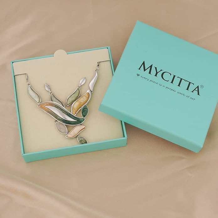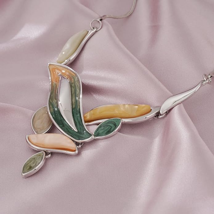 - Elegant Necklace and Earring Sets - Green necklace is adorned with colorful artistic leaf shape resin pieces which contribute its unique chic style and adjustable collar length design. Necklace Length – 15.8’ +3.2’ (40+8 cm). A great piece for jewelry accessories collection.