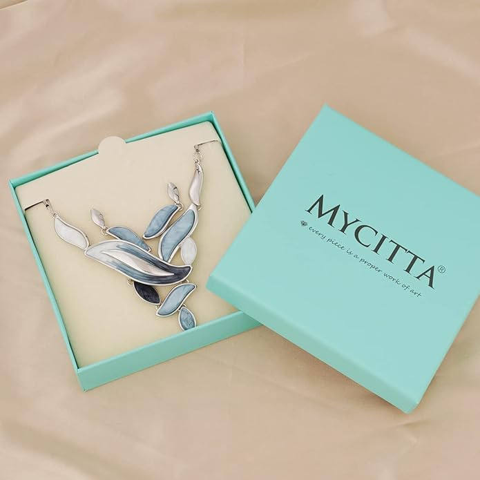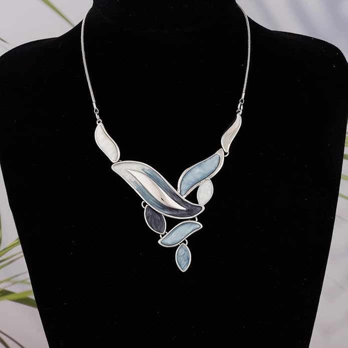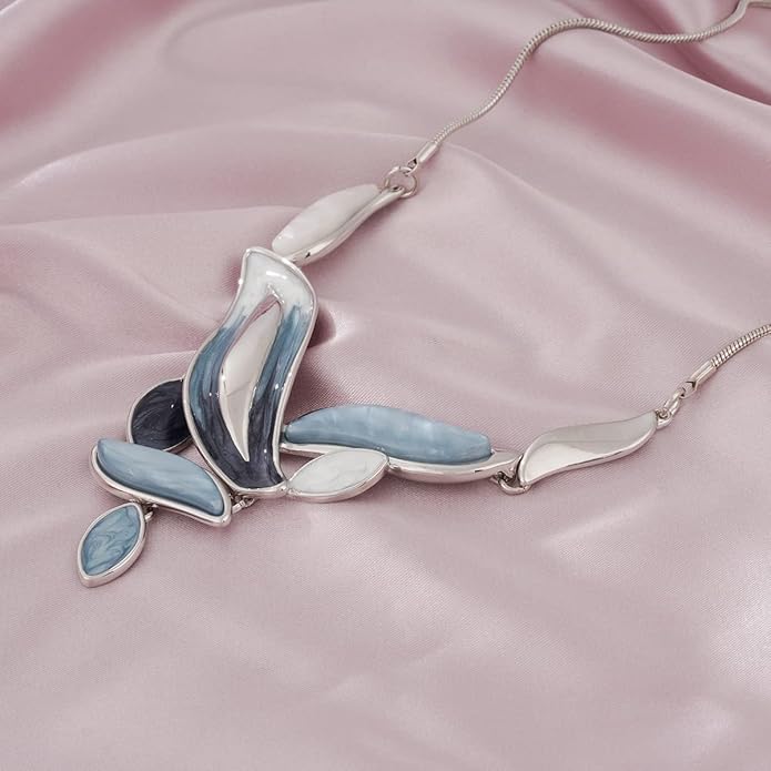 - Elegant Necklace and Earring Sets - Pale-blue necklace is adorned with colorful artistic leaf shape resin pieces which contribute its unique chic style and adjustable collar length design. Necklace Length – 15.8’ +3.2’ (40+8 cm). A great piece for jewelry accessories collection.