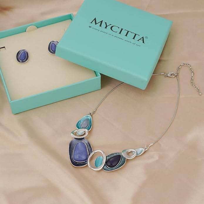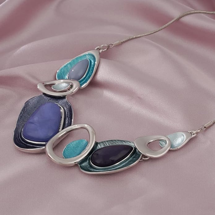 - Elegant Necklace and Earring Sets - Blue necklace is adorned with colorful artistic geometric resin pieces which contribute its unique chic style and adjustable collar length design. Necklace Length – 15.8’ +3.2’ (40+8 cm). A great piece for jewelry accessories collection.