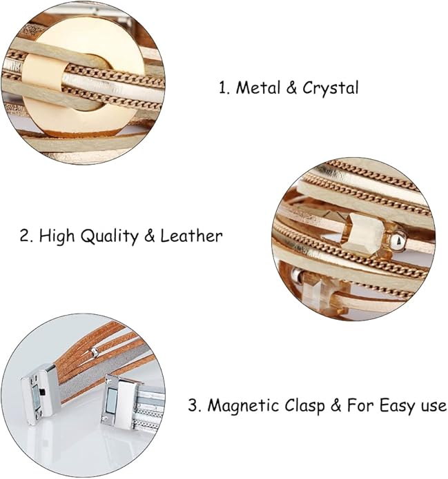 - 【GREAT GIFT & SERVICE】This wrap bracelet is suitable for all age women, perfect as a gift to your wife, mother or friends when Valentine’s Day, Mother’s Day, Birthday, Anniversary, Christmas Day or any special occasions. We are dedicated to providing you with exceptional jewelry and outstanding service. If there is any problem with your purchase, please feel free to contact us, we will try our best to help you.