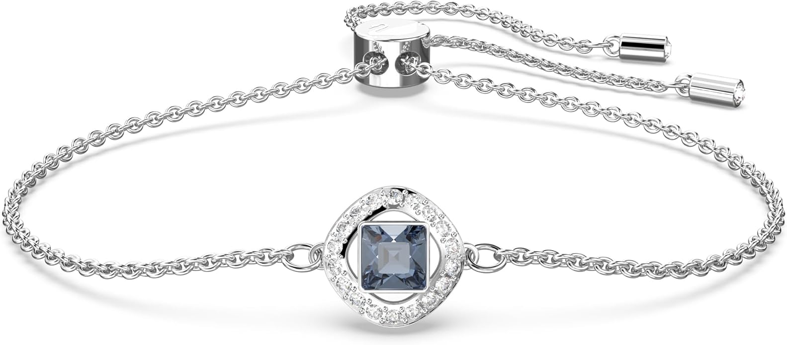 - Items delivered: (1) Swarovski Una Angelic bracelet with a square cut blue crystal and clear crystal pavé on adjustable rhodium finished chain, sliding closure, complete with Swarovski bracelet box
