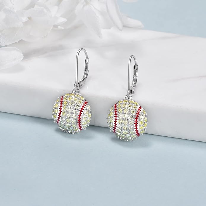 - 💖Design: A uique earrings special made for softball lovers.Inlay with shining cubic zirconia,unique,fashion,fine.Leverback designed, classic.Inspirational jewelry gift for softball Lovers,softball Player and Coaches.